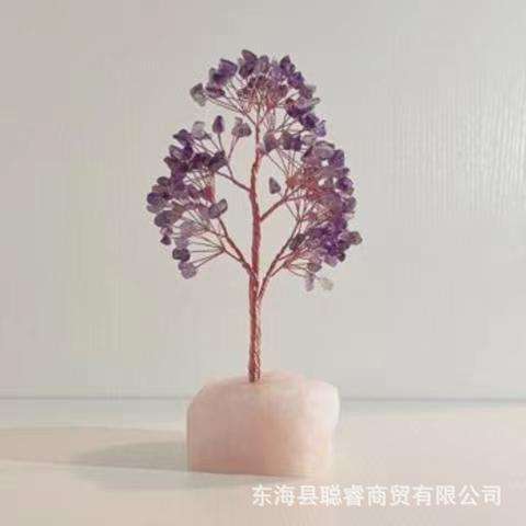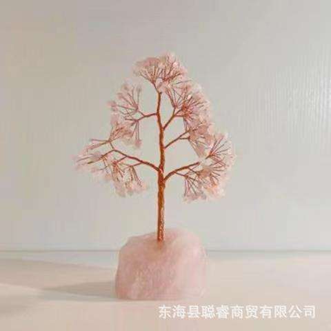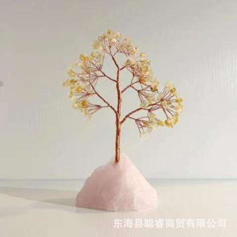 Árbol del Dinero con Base de Cuarzo Rosa, Cristal Natural Hecho a Mano, Adorno de Escritorio, Decoración para Sala de Estar