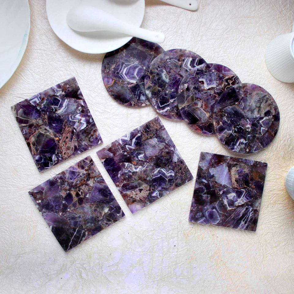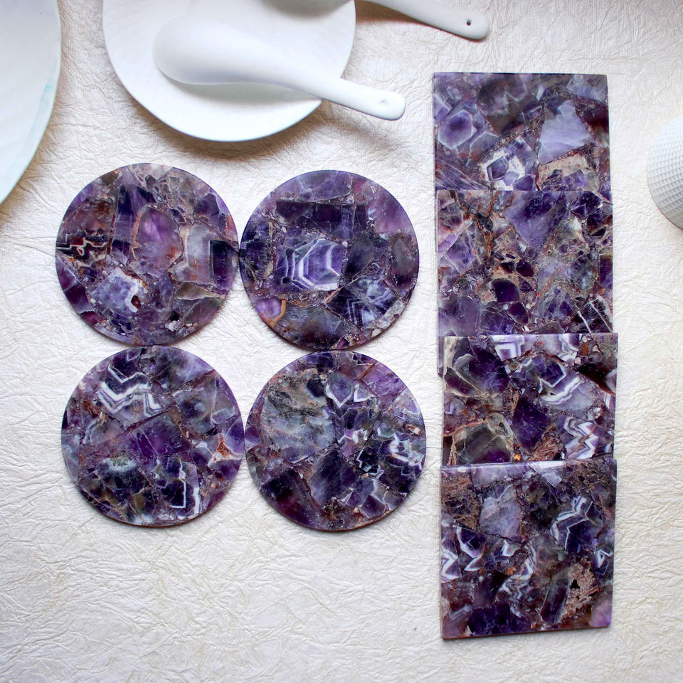 Juego de Pulsera, Colgante y Posavasos de Cuarzo Rosa | Posavasos de Losa de Amatista Rosa Geoda | Set de Regalo de Piedras Preciosas Naturales, Set de Decoración para el Hogar