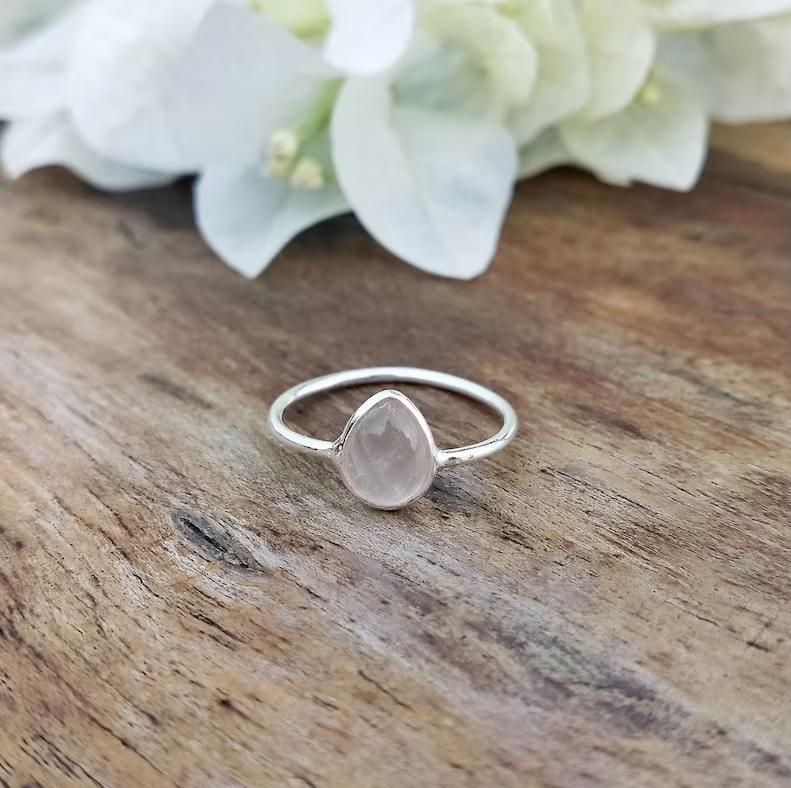 Nombre:Anillo de plata de ley con cuarzo rosa