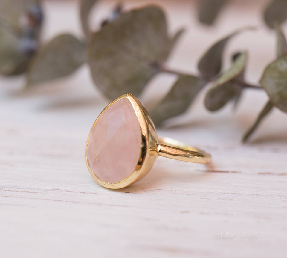 Palabra clave:Anillo de Cuarzo Rosa, Piedra Preciosa Natural, Joyería Hecha a Mano