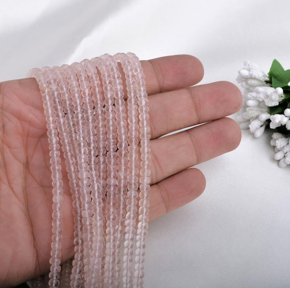 Cuentas facetadas de cuarzo rosa, cuentas de piedras preciosas naturales para la elaboración de joyería fina