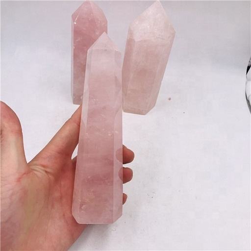 Venta al por mayor de piedra natural torre de cuarzo rosa patrón de corazón varita estilo Feng Shui cristal ágata técnica de piedras preciosas grabado popular