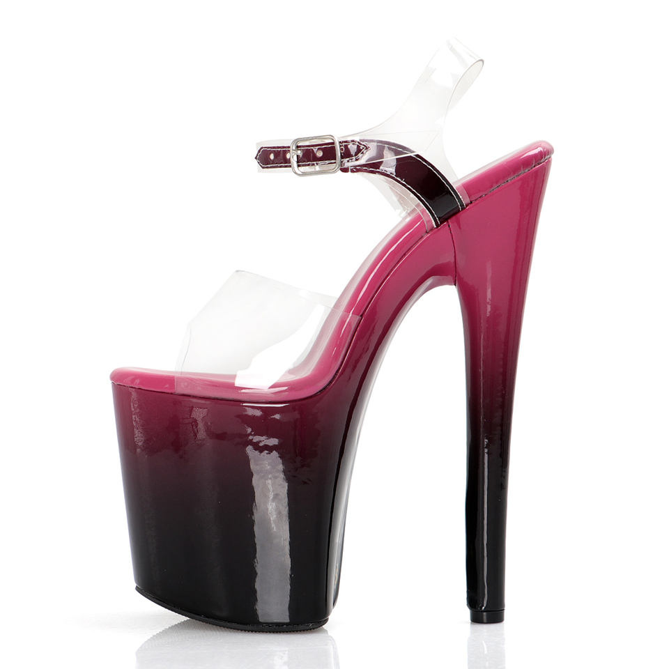 Zapatos de Pole Dance con Plataforma de 8 Pulgadas (20 cm) y Cambio Gradual de Color Rojo Rosa, Sandalias Góticas para Mujer, Estilo Cross Dressing, para Club Nocturno, con Punta Abierta