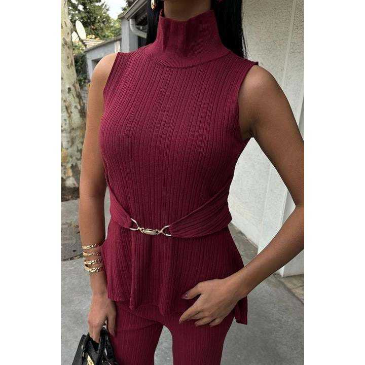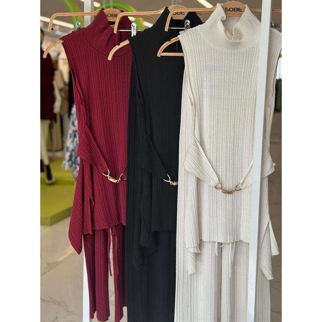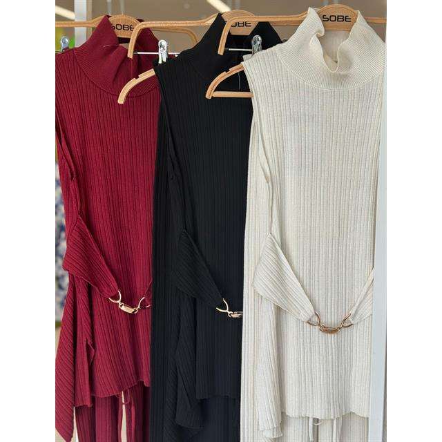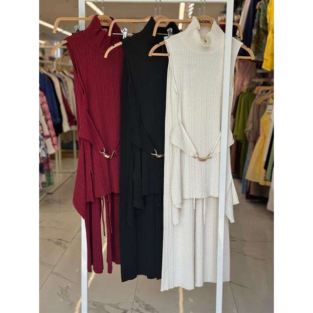 Vestido de punto acanalado rosa con cuello alto, asimétrico, holgado, transpirable, para uso diario informal