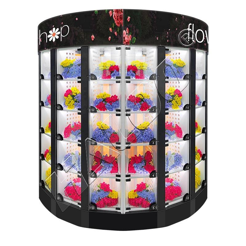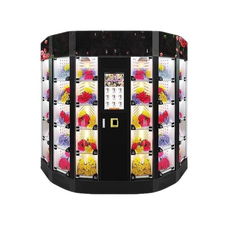 Máquina Expendedora de rosas con pantalla táctil digital, pago sin efectivo y compartimentos de almacenamiento frescos