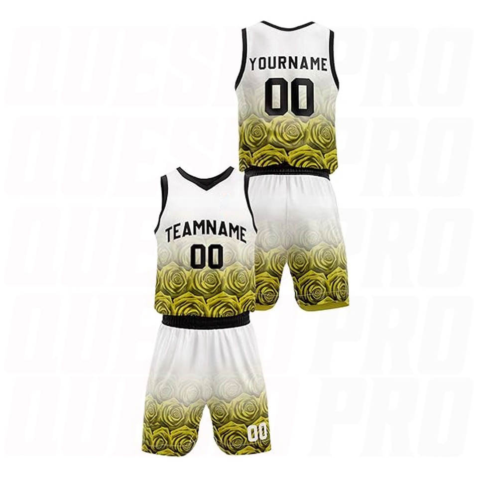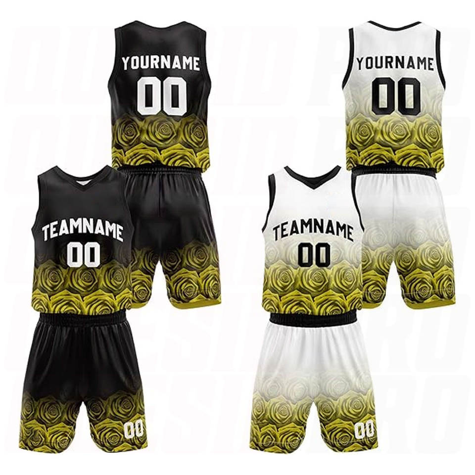 Uniformes de Baloncesto Reversibles Personalizados en Amarillo Rosa, Conjuntos de Camisetas y Pantalones Cortos de Baloncesto Sublimados para Equipos