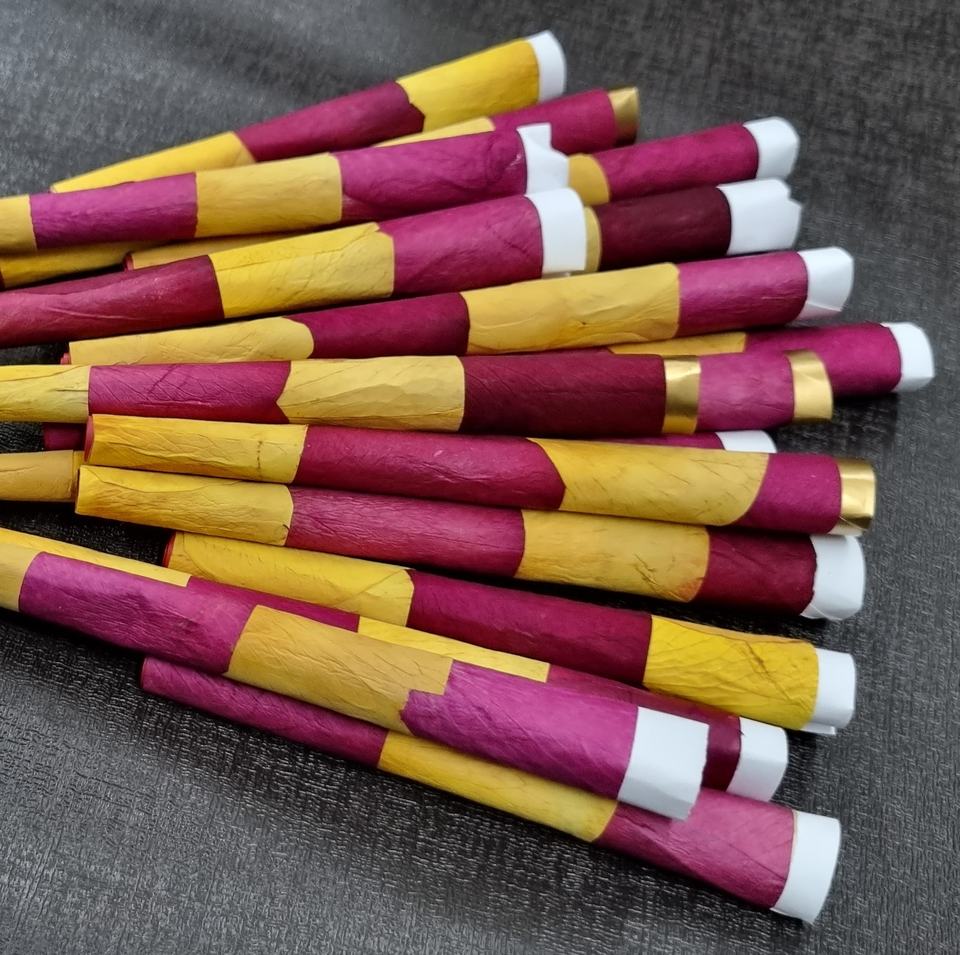 Rollos de conos rosas en puntas de madera y vidrio, los mejores precios, paquete personalizado, EE. UU., conos de rosas laminados a mano morados, el mayor fabricante indio
