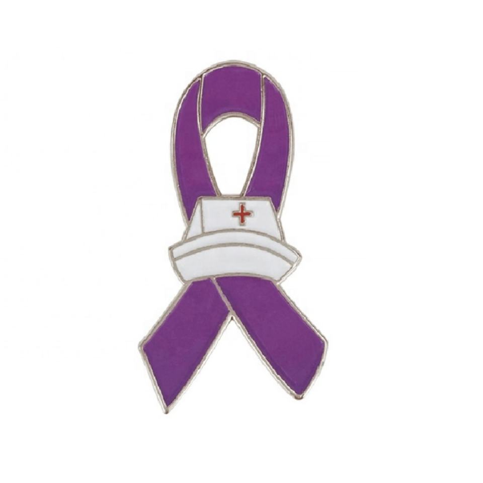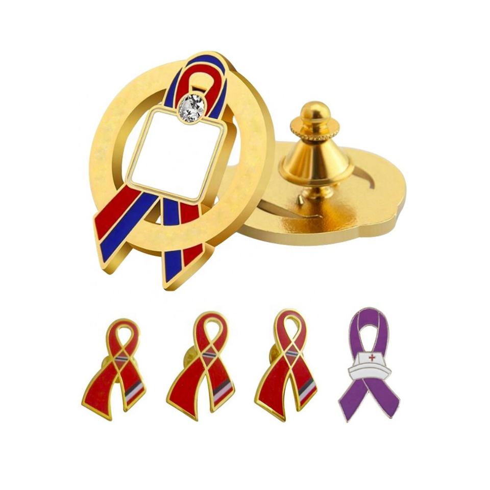 Pin de solapa de metal chapado en oro con cinta de satén y rosetas, para enfermeras de cáncer de mama, broche esmaltado personalizado en azul, rojo y rosa