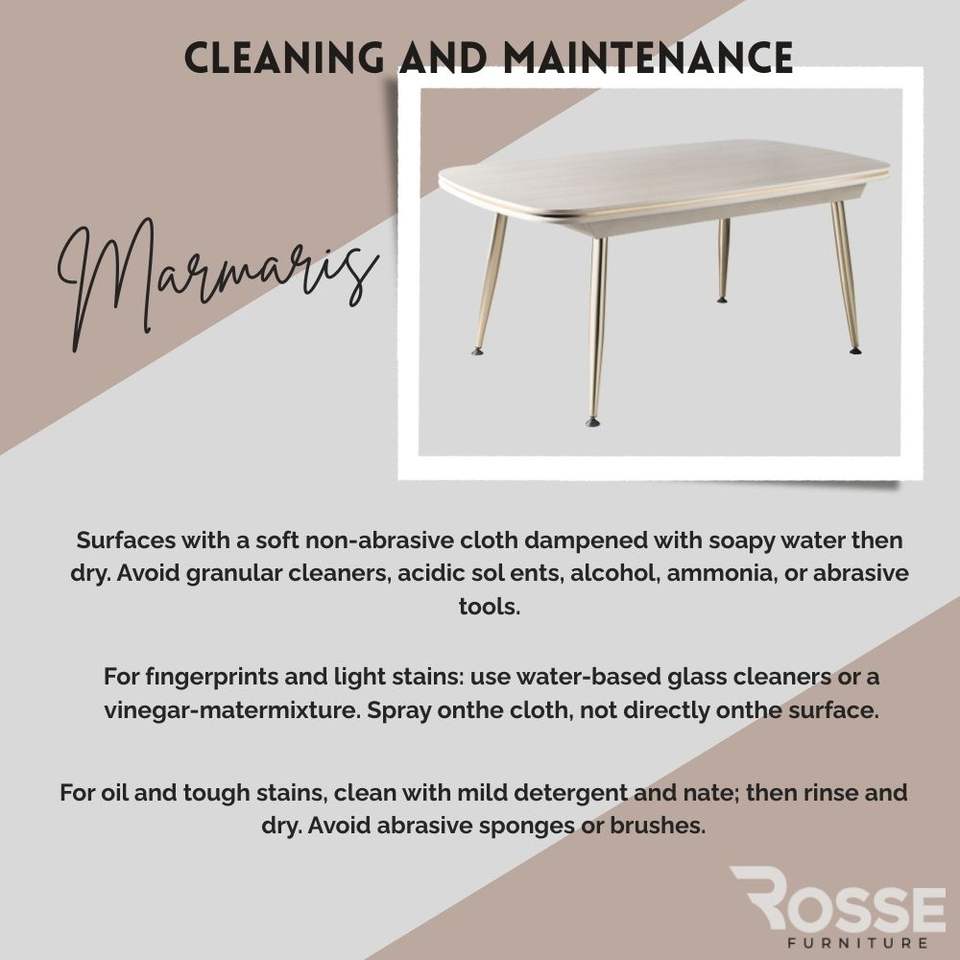 Mesa de Comedor Rectangular Rosse Marmaris con Tapa de Mármol Crema, Patas de Metal, para 6 Personas, Diseño Moderno, Estructura Estable, Turquía