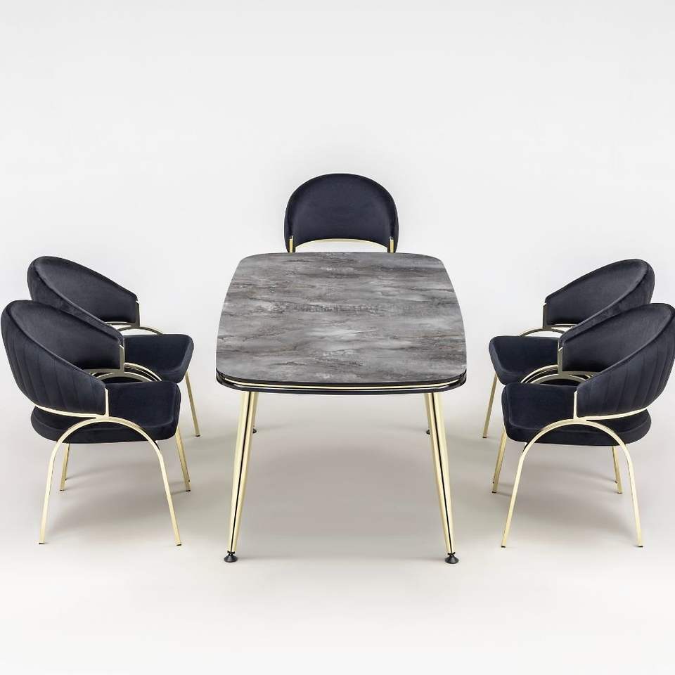 Juego de Comedor Europeo Moderno Rosse con 6 Sillas, Respaldo Sólido, Rectangular, Muebles de MDF para Cocina, Diseño Duradero