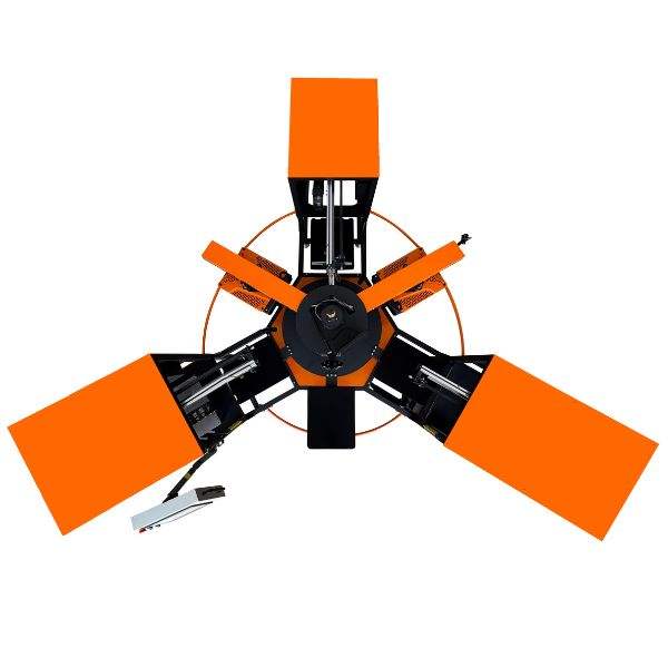 Prensas térmicas neumáticas rotatorias tipo carrusel 40x50 cm, 6 estaciones, alimentación automática, pelado automático, extracción automática