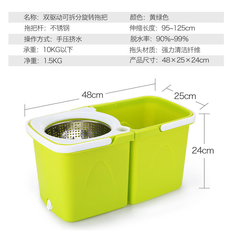 Cubo de fregona giratorio de doble accionamiento desmontable 48x25x24cm con fregona de microfibra, set de limpieza de suelos