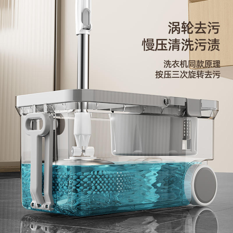 Mopa Giratoria con Cubeta, Doble Accionamiento, Secado Automático sin Manos, Limpiador de Pisos de Microfibra, Blanco, 2.2 kg