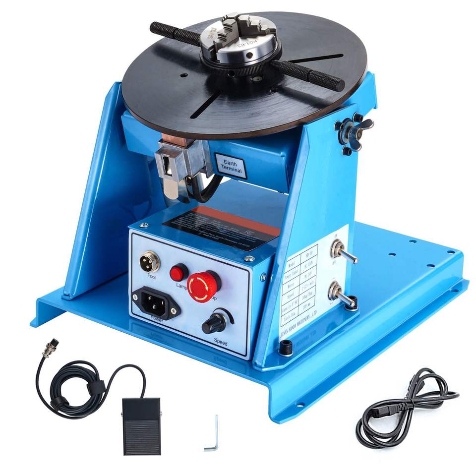 Posicionador de Soldadura Rotatorio con Capacidad de Carga de 10 kg, Plataforma Giratoria de 0-90 Grados, Mandril de Torno de 3 Mordazas de 8.1 Pulgadas, Velocidad de 1-12 RPM, Motor de 20W