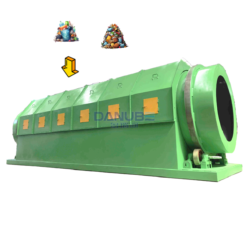 Sistema de reciclaje de separación de residuos municipales de trabajo rotativo, equipo de clasificación de basura de ciudad, pantalla de tambor, maquinaria de tratamiento de basura