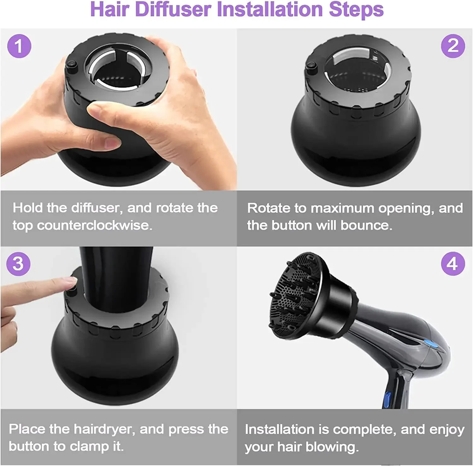 Difusor de Pelo Giratorio Profesional de Material ABS Duradero, Color Negro/Blanco, Marca WangDa, Modelo Ac-277-black, Compatible con Varios Tipos de Cabello
