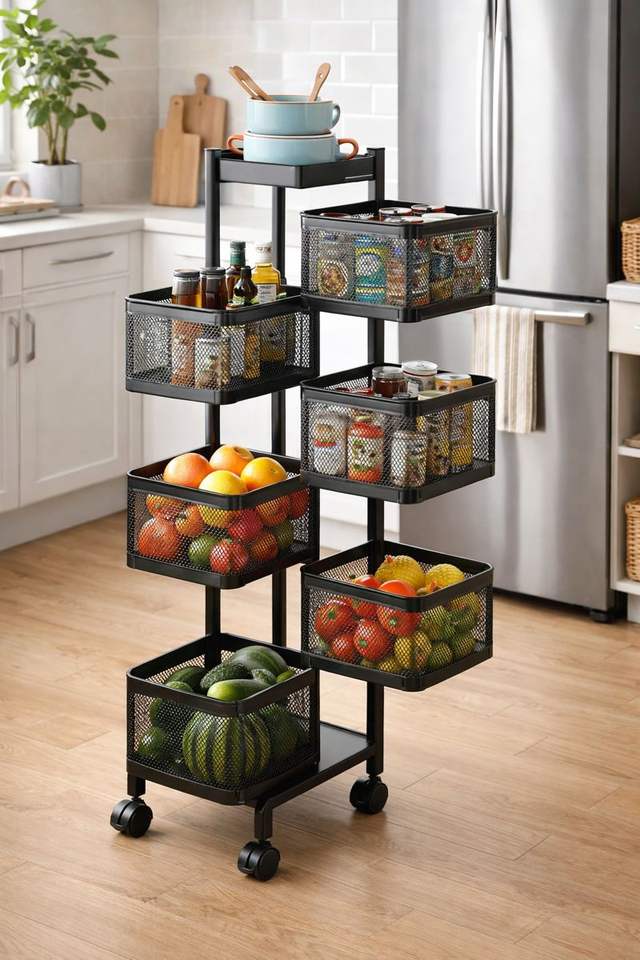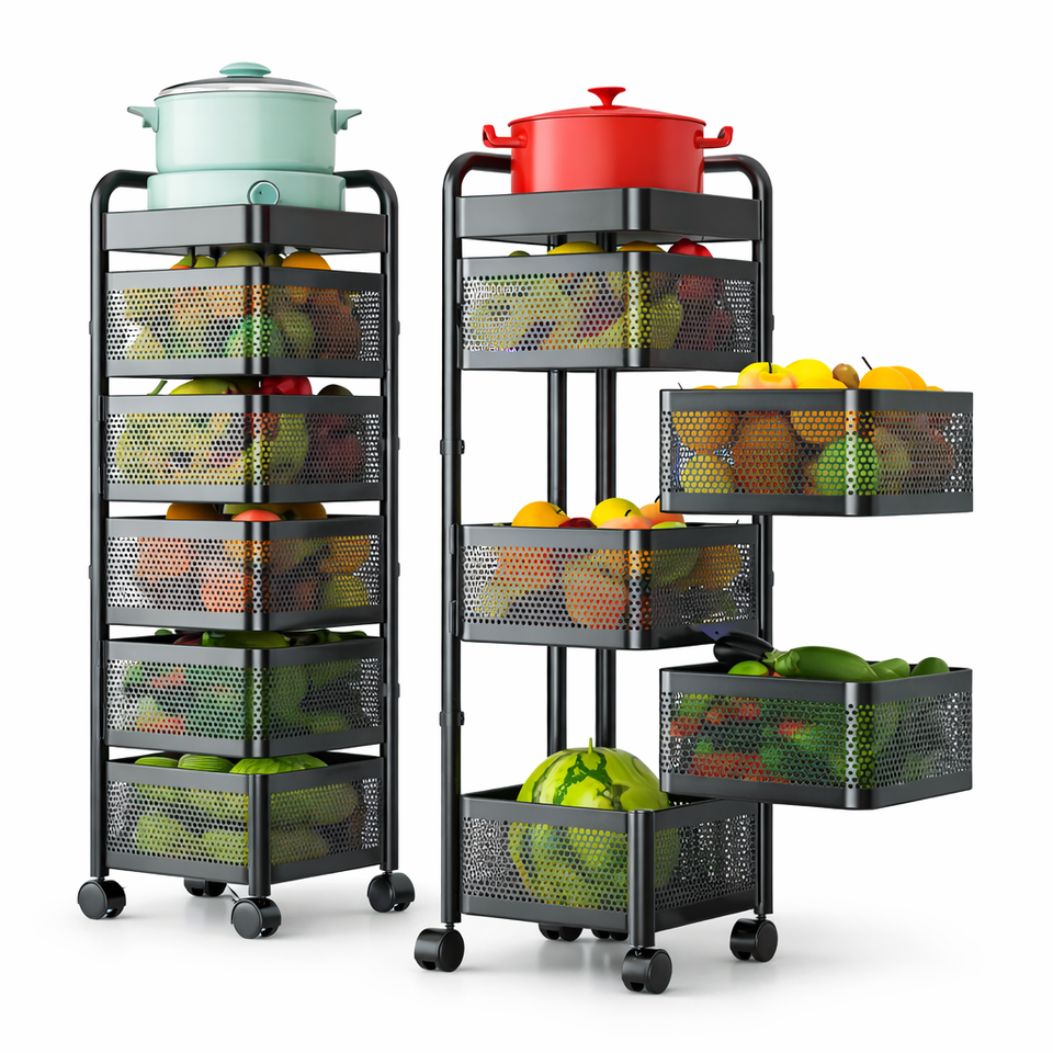 Estante de Almacenamiento de Cocina Metálico Giratorio de Múltiples Niveles, Organizador Plegable Móvil, Ligero, Fácil de Montar, OEM ODM EDPRMS000