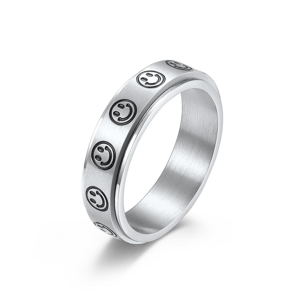 Anillo Giratorio de Acero Inoxidable con Diseño de Cara Sonriente para Aliviar el Estrés, Joyería Unisex de Regalo en Acero, Oro y Negro