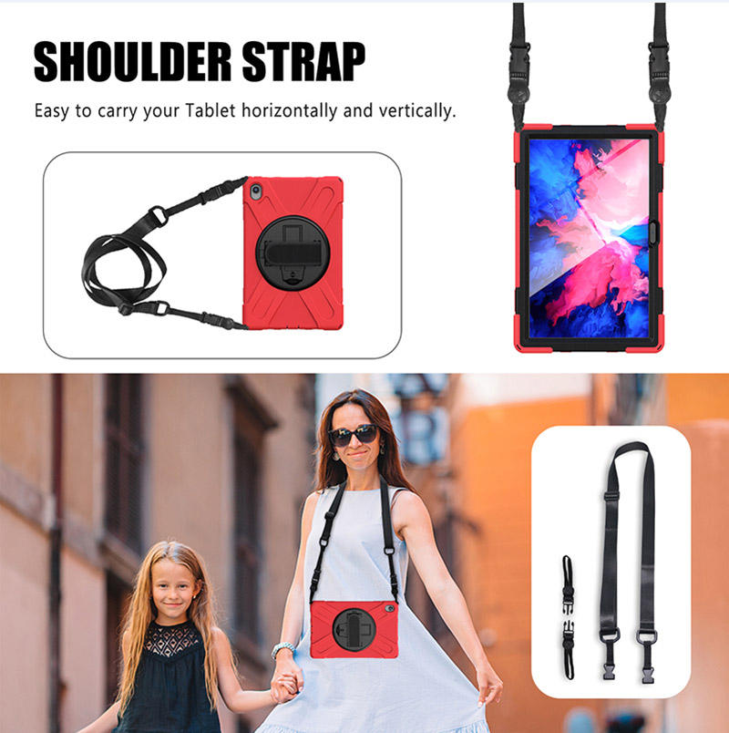 Funda de silicona con soporte giratorio para tableta, correa de hombro, resistente, para niños, para Lenovo Tab P11 2020 tb-j606f, a prueba de golpes, suave