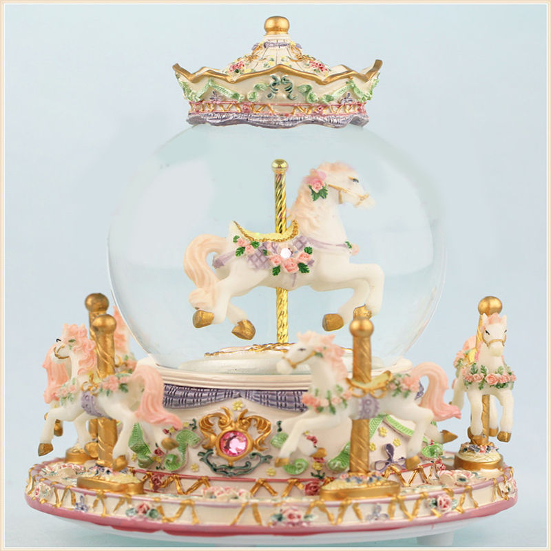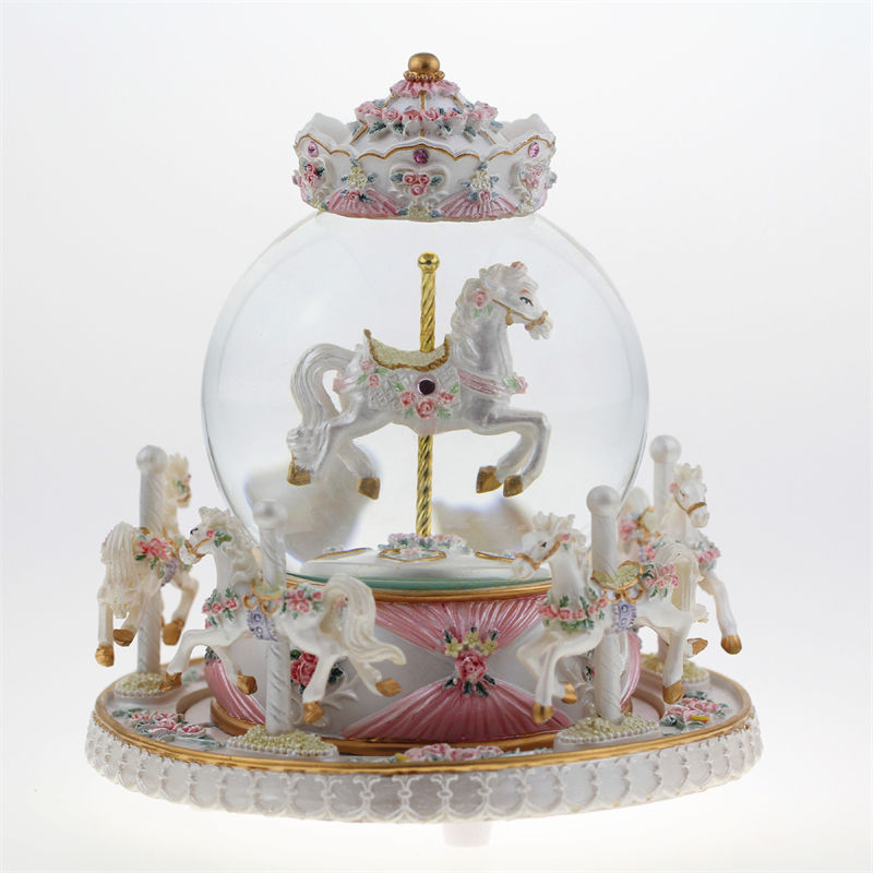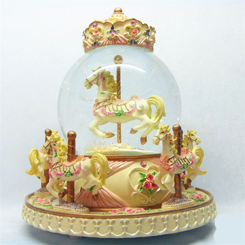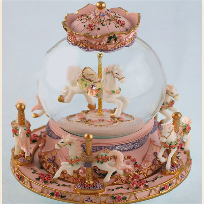 Carrusel giratorio Rosa bola de cristal romántica caja de música