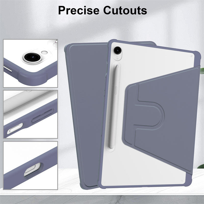 Funda Giratoria para Samsung Galaxy Tab S10 Lite S10 FE S9 FE 10.9'' S9 11'' con Soporte para S Pen, Rotación de 360 Grados, Cubierta Trasera Transparente