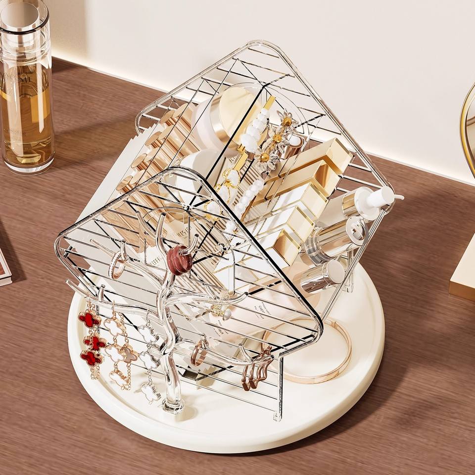 Caja giratoria para almacenamiento de cosméticos, organizador de lápices labiales de escritorio, soporte para brochas de maquillaje, organizadores de maquillaje de plástico 4 en 1