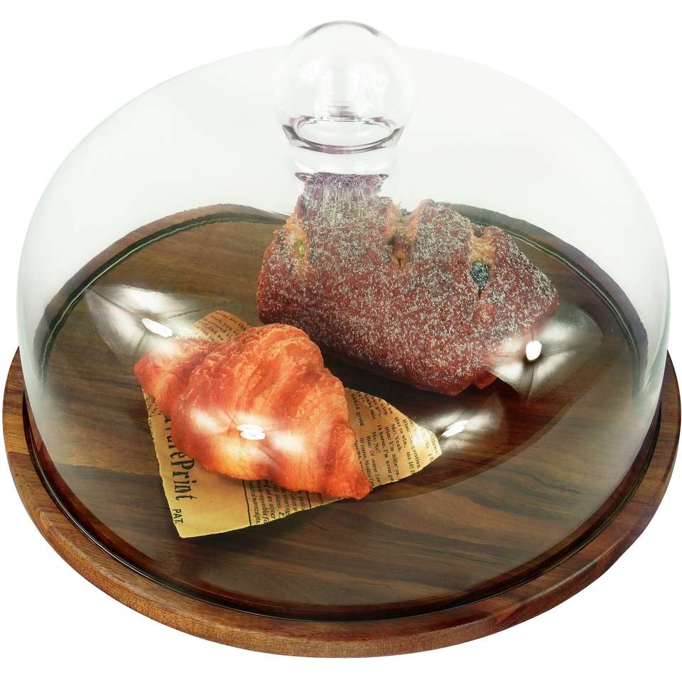 Plato Giratorio para Cupcakes con Tapa de Cristal, Base de Bambú y Plato Giratorio