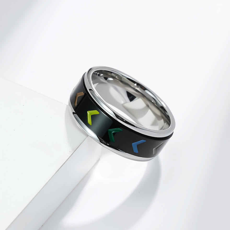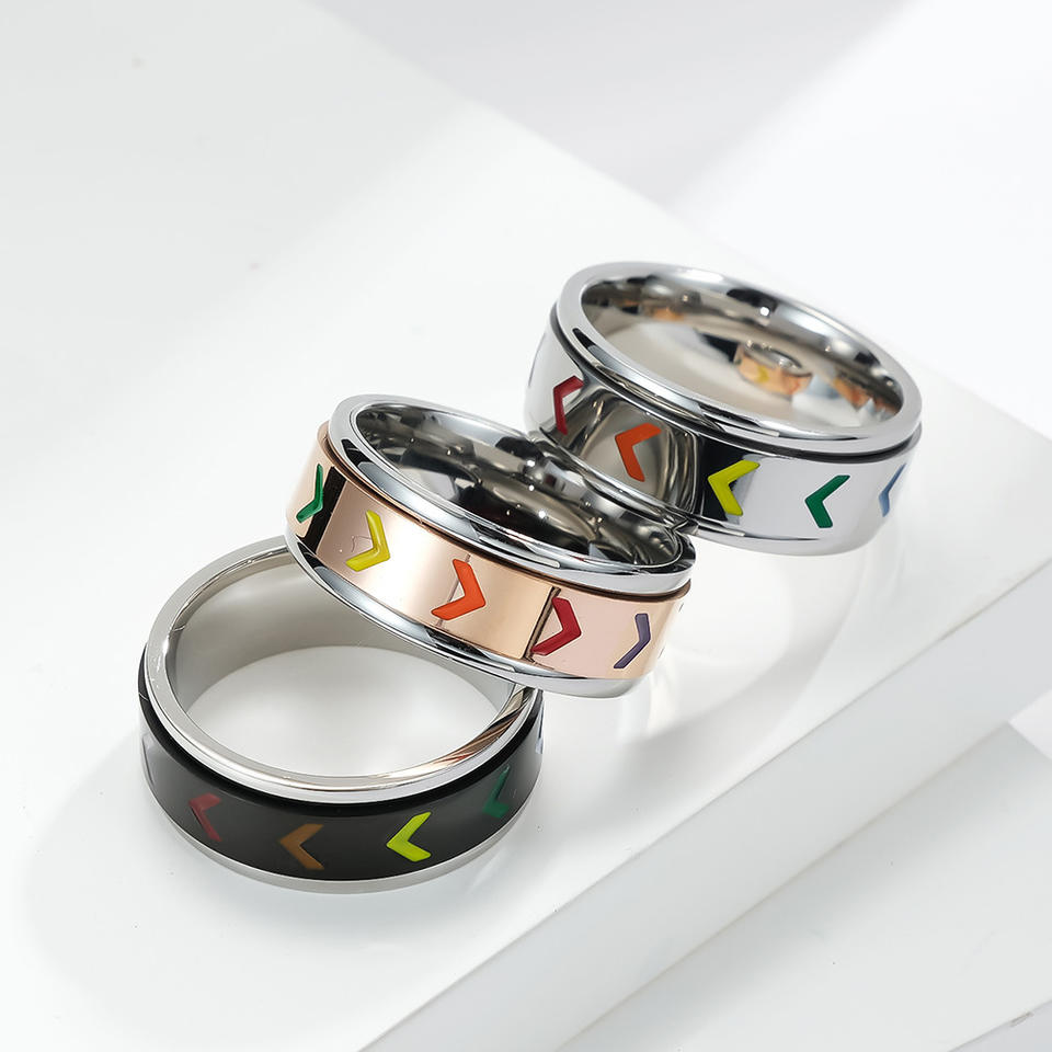 Anillo de Acero de Titanio con Bandera Arcoíris Giratoria y Patrón de Flecha, Joyería de Moda Unisex, Regalo de Dongguan