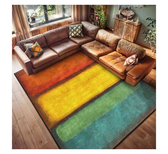Alfombra Rothko Abstracta con Bloques de Color, Alfombra Moderna Geométrica Lineal con Espectro Vibrante, Alfombra Tejida a Mano con Rayas Horizontales