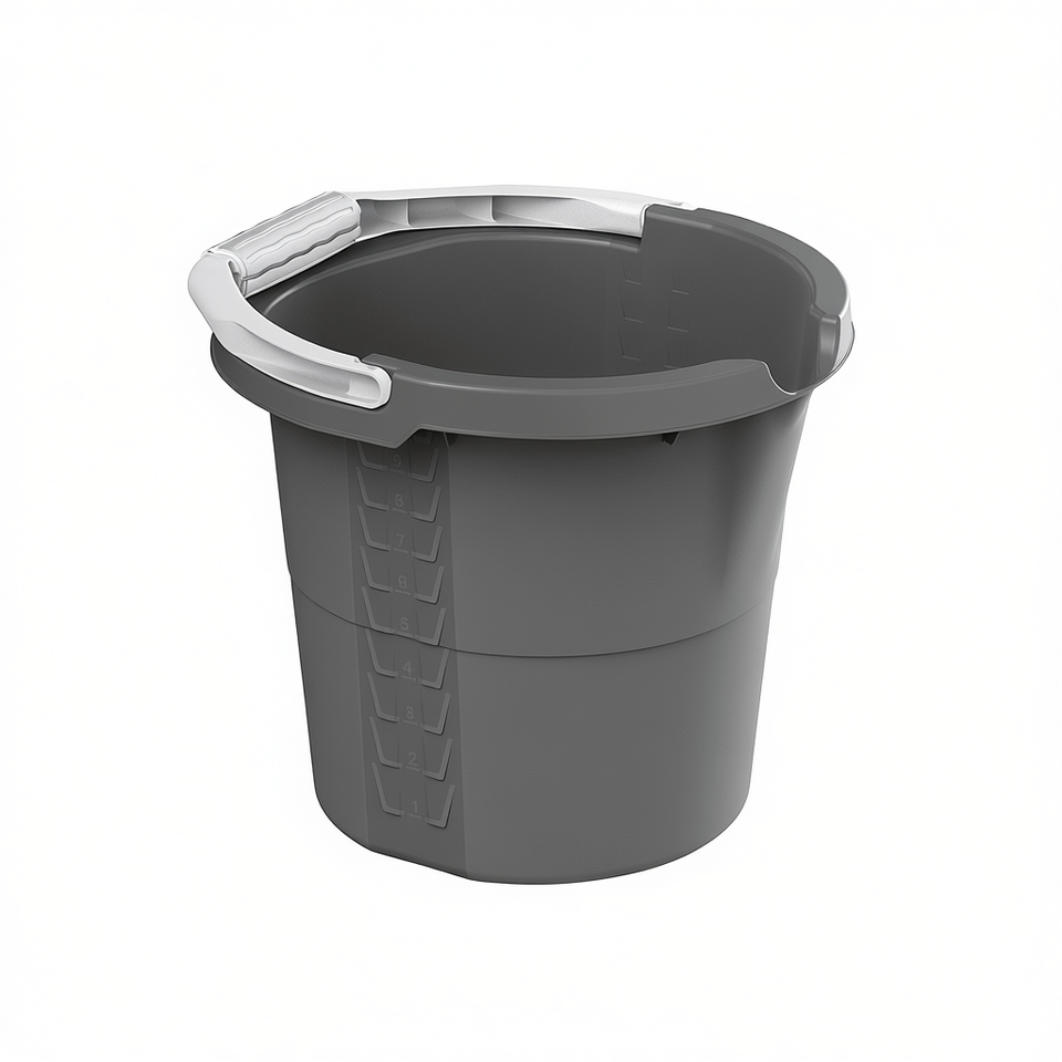 Cubo Doméstico Rotho, Paquete de 5, Gris, con Asa y Marcas de Medición para Limpieza y Almacenamiento
