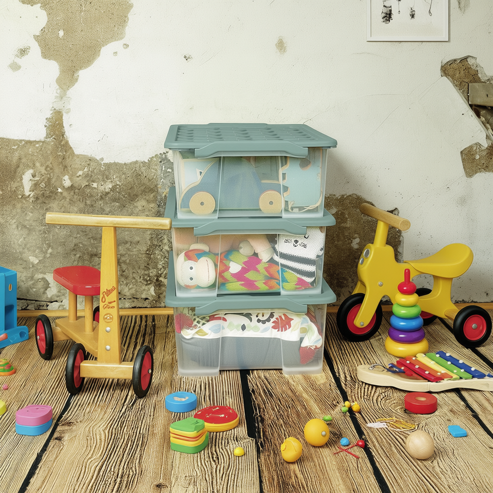 Caja de Almacenamiento Rotho Evo Safe, Organizador de Juguetes para Niños, Contenedor Transparente Apilable con Tapa para Uso en Habitaciones Infantiles