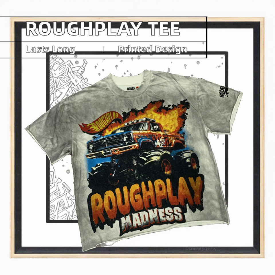 Camiseta de Manga Corta Casual de Verano para Hombre RoughPlay Madness, 100% Algodón, Corte Regular, Impresión Digital en Blanco