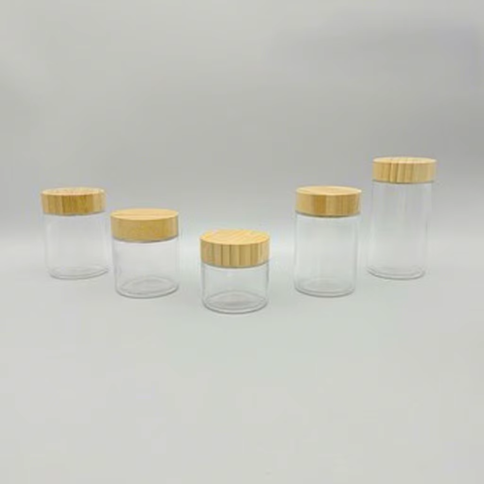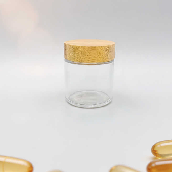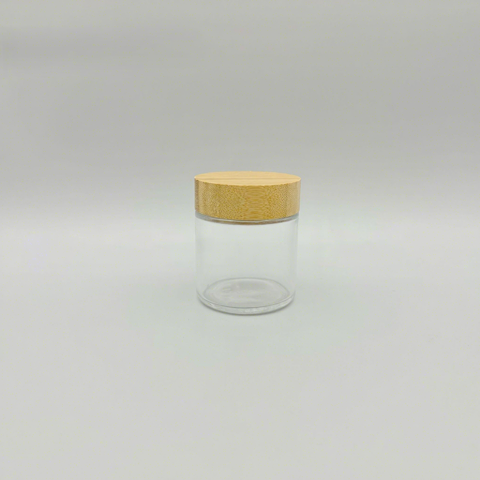 Envases Redondos de Bambú de 90 ml, Frascos de Vidrio Cosméticos Vacíos, Fabricante YMP HM-096 con Tapa de Bambú