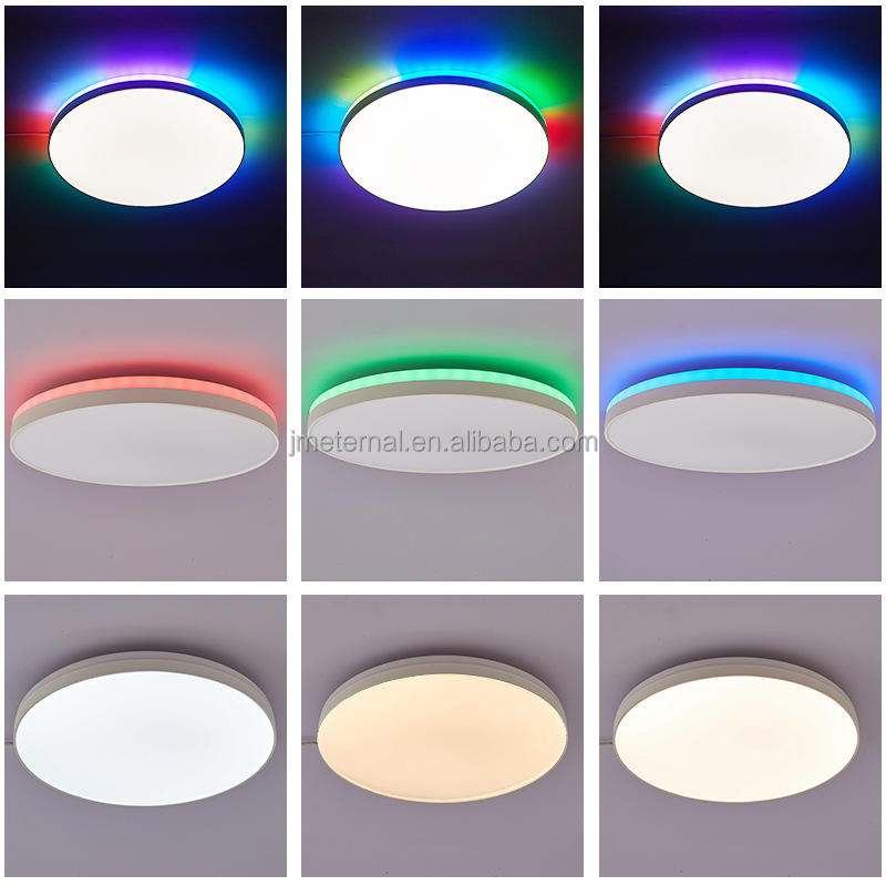 Luces de techo redondas RGBWW remotas de aplicación, luz de techo LED de montaje en superficie de Color seleccionable para sala de juegos en casa