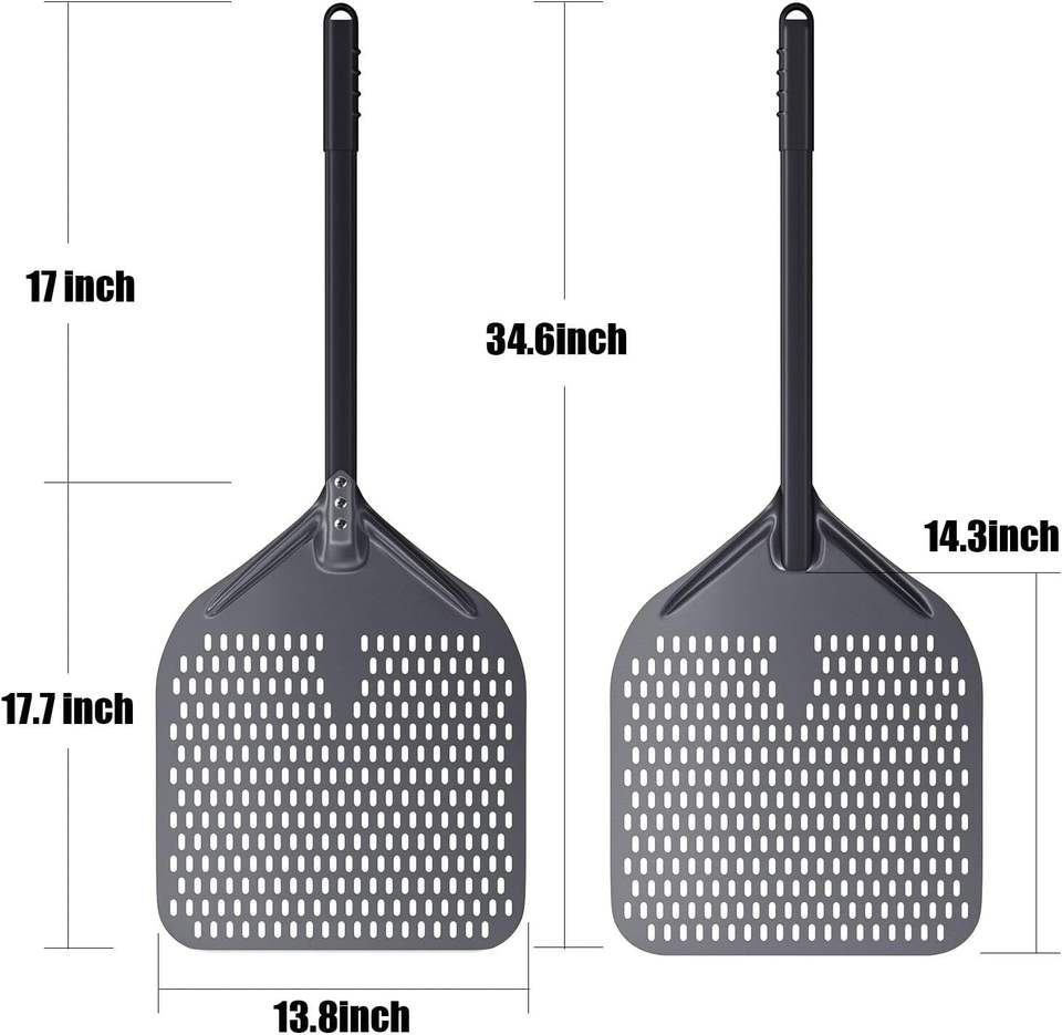 Pala Redonda para Pizza de Aleación de Aluminio de 16 Pulgadas x 14 Pulgadas, Recubrimiento Duro, Cuadrada/Redonda de 12 Pulgadas a 14 Pulgadas, Antiadherente