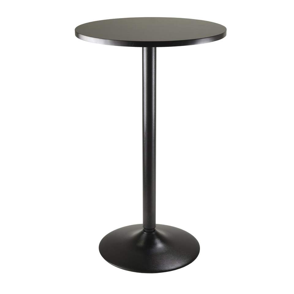 Mesa de Comedor Redonda con Tapa de MDF Negra, Patas y Base Negras, Estilo Pub