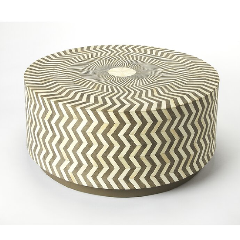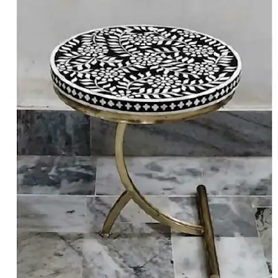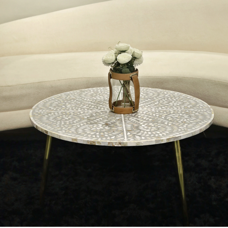 Mesa redonda con incrustaciones de hueso para una consola de mesa de té elegante de estética minimalista y moderna a precio de fábrica mayorista