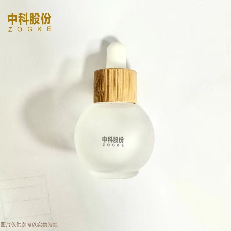 Botella redonda personalizada color macarrón 20ml 30ml botella de vidrio coleccionable color primario tapa de madera botella cuentagotas de aceite esencial vacía
