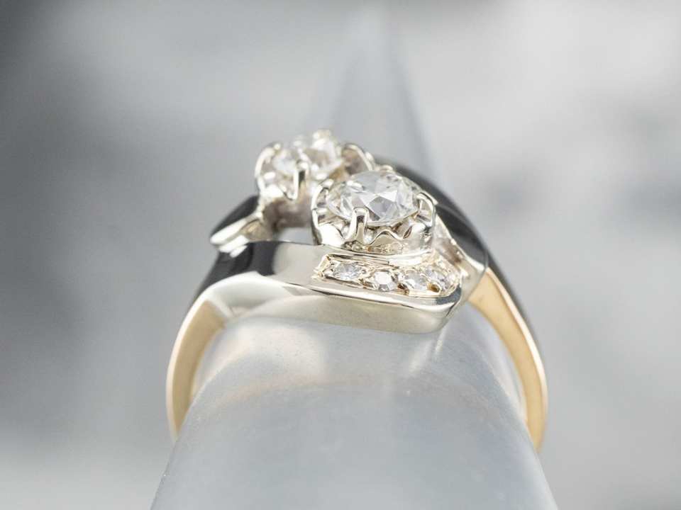 Anillo de Bypass de diamante cultivado en laboratorio de corte brillante redondo en oro de 14 quilates Toi Et Moi para regalos de aniversario de propuesta para fiestas