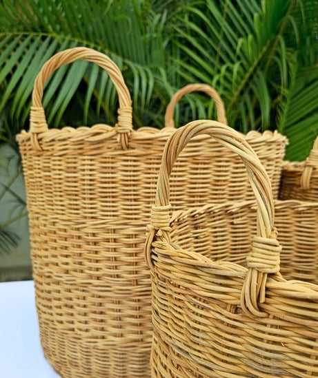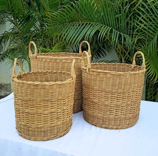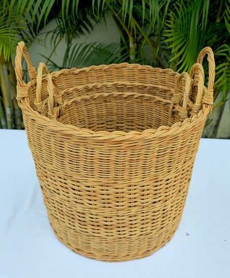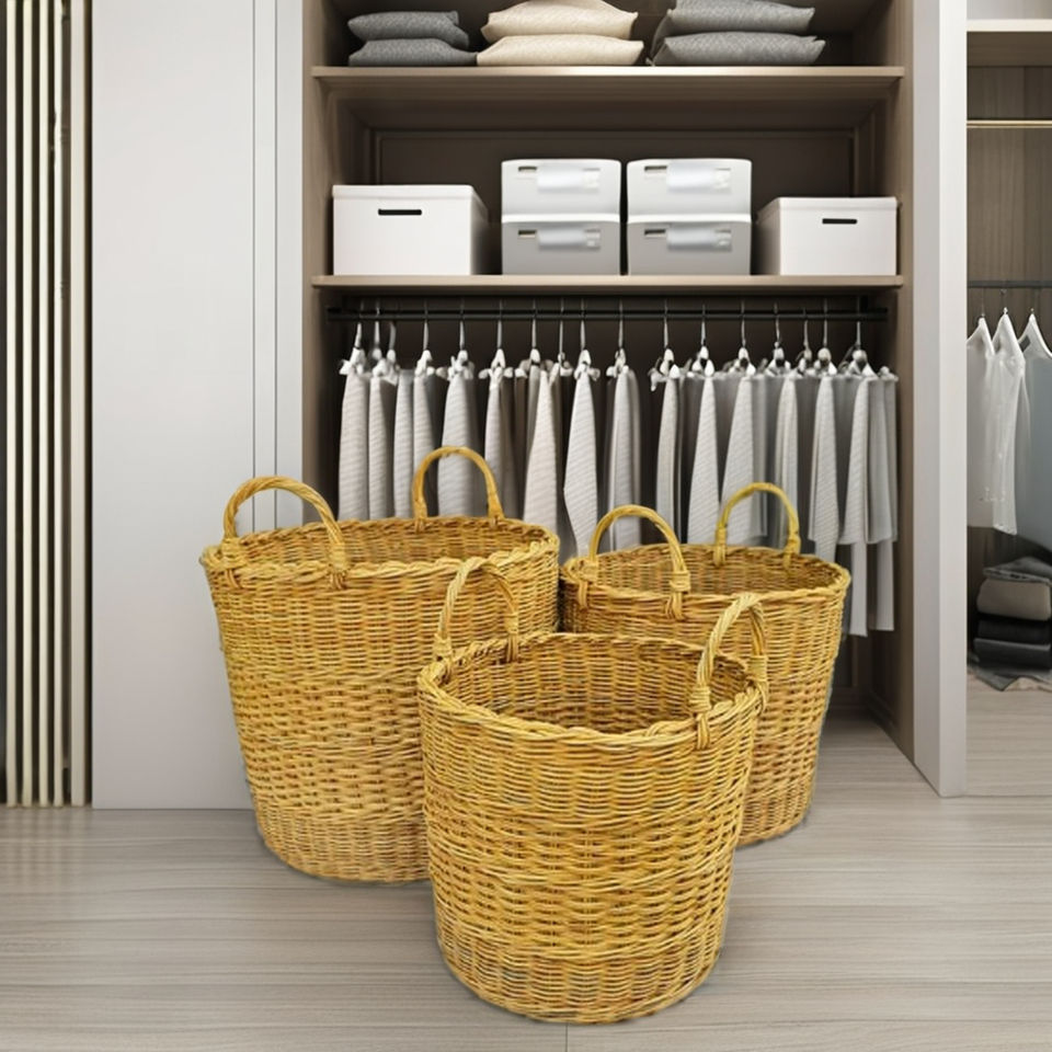 Cesta de Almacenamiento Redonda de Ratán Marrón, Contenedor Multiusos Ecológico