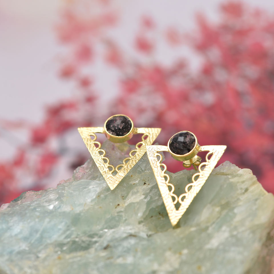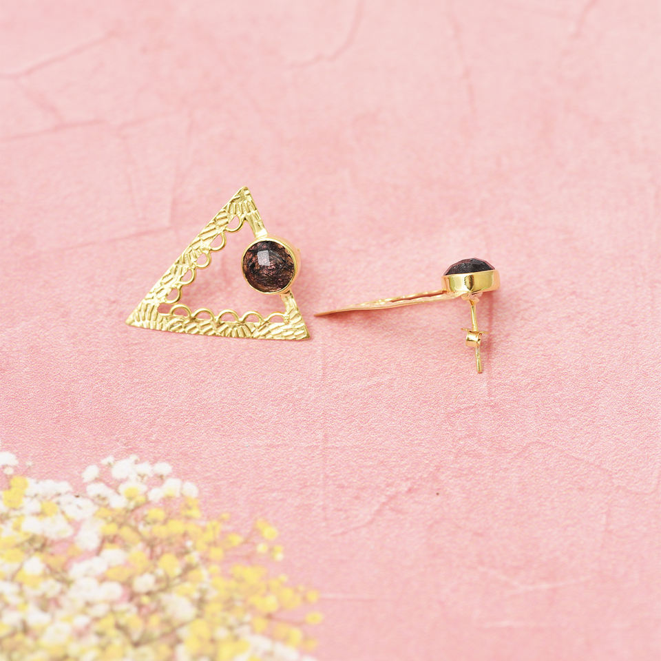 Pendiente de piedras preciosas de rutilo negro de cabina redonda Pendiente de Plata de Ley 925 Chapado en oro Pendiente de tuerca de moda para fiesta de regalo de boda