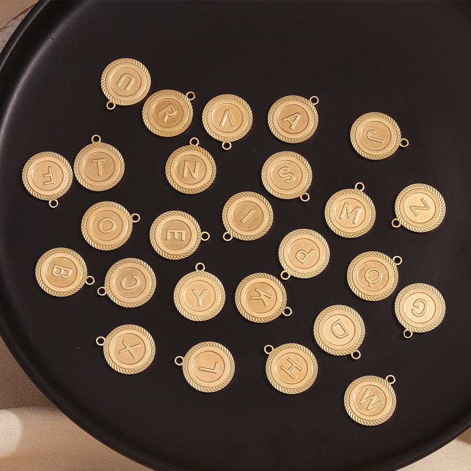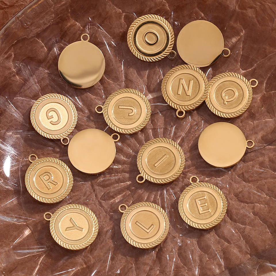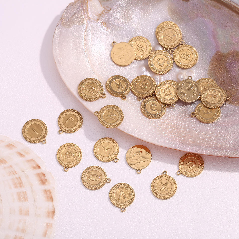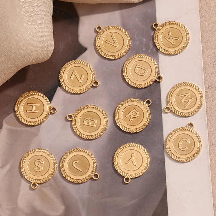 Colgante de acero inoxidable con letra inicial de tarjeta redonda, colgante chapado en oro, collares de joyería fina personalizados