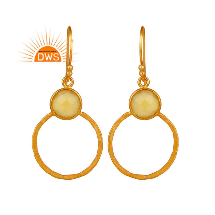Round Circle Designer Earring Women's Gold Plated Silver Earring Wholesale Yellow Chalcedony Gemstone Earring Jewelry