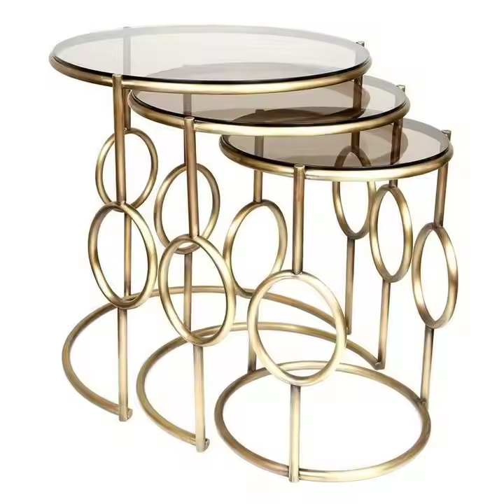 Azora Industries-Mesa de centro redonda de aluminio y hierro de color dorado para decoración de jardín y hogar, muebles de habitación