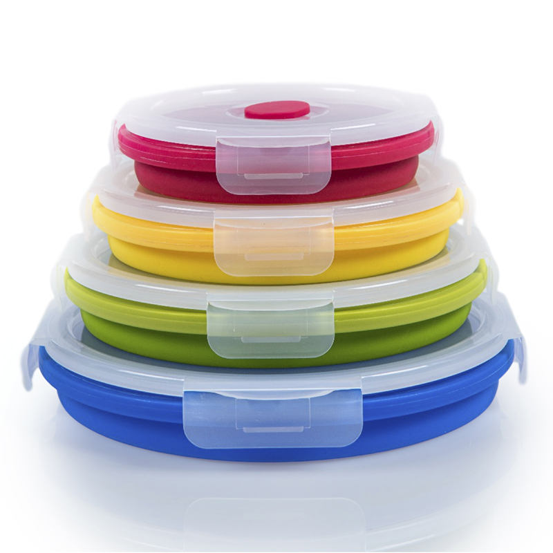 Juego de Loncheras Redondas Plegables de Silicona - 350/500/800/1200 ml, Silicona Platino de Grado Alimenticio + Tapa de PP, Logotipo Personalizado OEM
