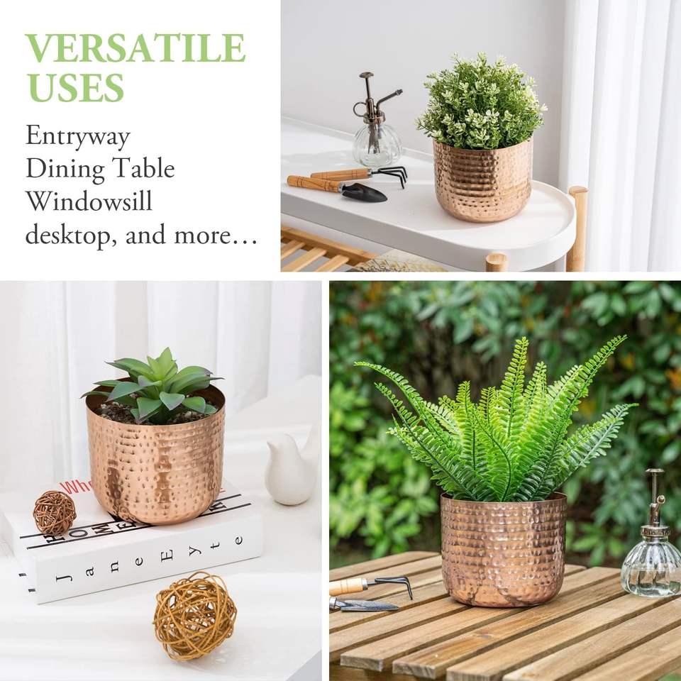 Macetero de Cobre de Lujo, Decoración para el Hogar, Maceteros Metálicos Hechos a Mano, Diseño Creativo Único, Patrón Clásico Portátil, Múltiples Tamaños