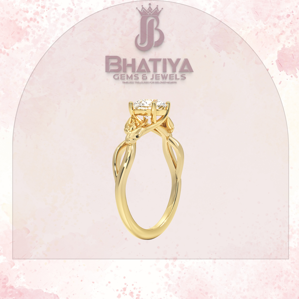 Anillo de compromiso de hoja de vid de corte redondo, solitario redondo de oro amarillo, Fabricante Mayorista personalizado, Joyería de diamantes para mujer