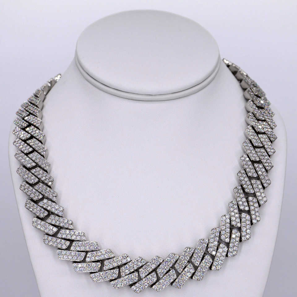 Corte redondo 14mm VVS Moissanite Diamond Cadena de eslabones cubanos Iced Out Jewelry para hombres Plata de Ley 925