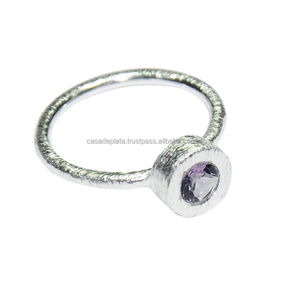 Anillo de piedras preciosas de amatista de corte redondo Anillos de Plata de Ley 925 Ajuste de bisel Anillo de moda Chapado en plata de moda para regalo de boda.