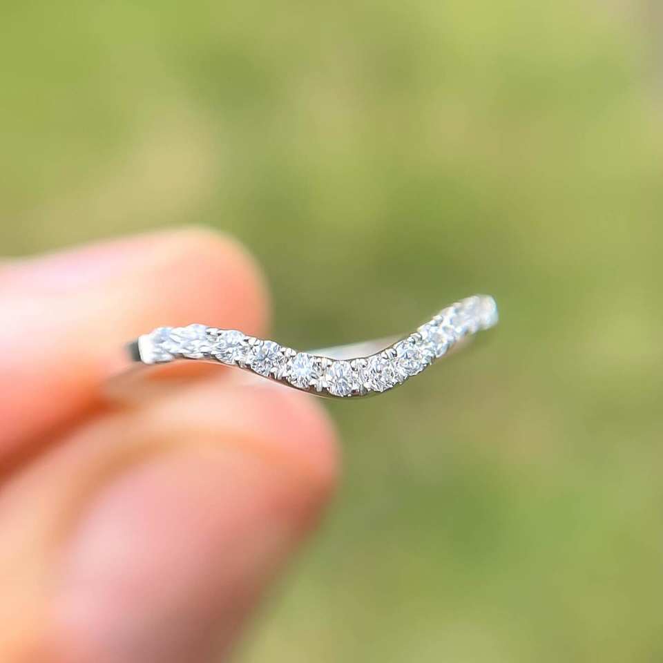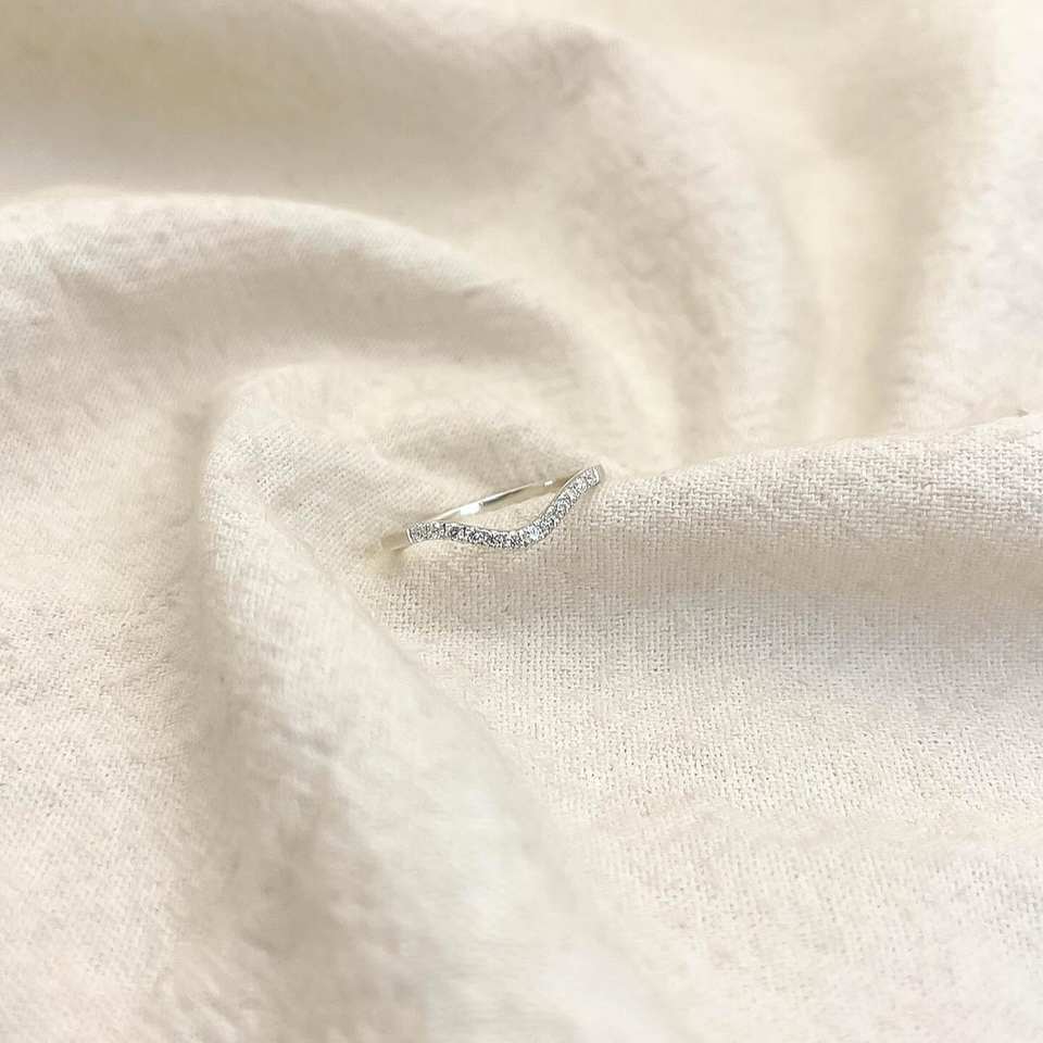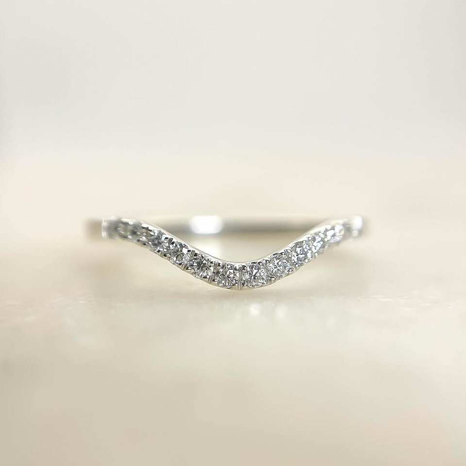 Corte redondo CZ oro blanco Chevron boda banda 1,5mm Pave Wishbone apilamiento anillo mujeres aniversario nupcial moda joyería proveedor